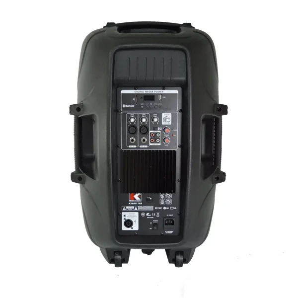 Woofer de 15"Bobina de 2"Potencia de 200 W RMSReproductor MP3 por USB, SD y BluetoothEcualizador de dos bandas para el masterImpedancia: 8 OhmEntradas: 2 Mic/Línea con XLR/TRSSalidas: 1 Plug Speakon para alimentar bocina pasiva externaAuxiliar: 2 RCA