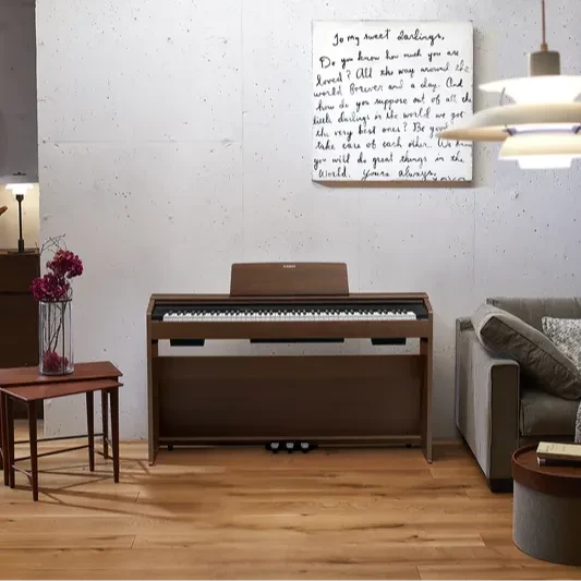 Las características de la fuente de sonido AiR* de modulación multidimensional que ha desarrollado recientemente CASIO reflejan un gran esfuerzo en el detalle por expresar los ricos tonos resonantes inherentes al piano. Se ha ampliado la capacidad de la memoria instalada para lograr una mayor duración de muestreo y una calidad mejorada de datos de forma de ondas. Los cambios temporales de tono que crean sonido que solo esperaría escuchar en un piano se reproducen de manera natural, comenzando con el sonido inicial y desembocando en una hermosa extensión hasta que el sonido finalmente se desvanece.