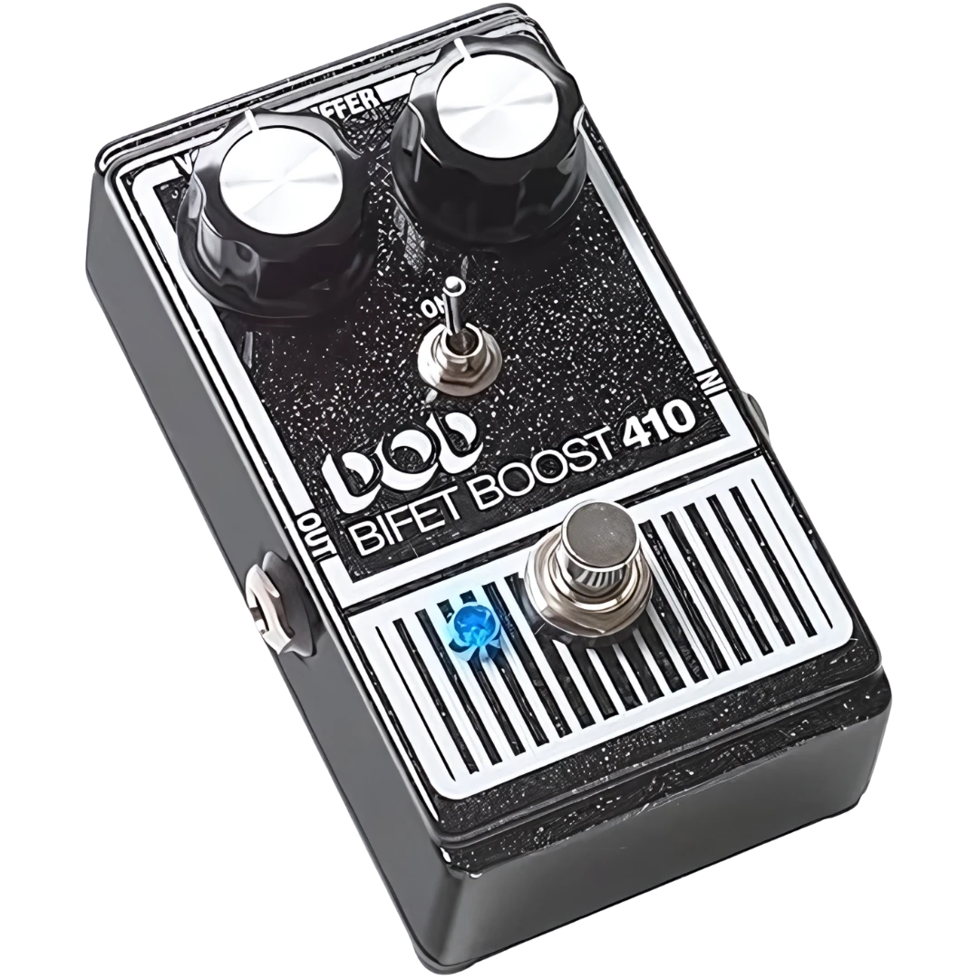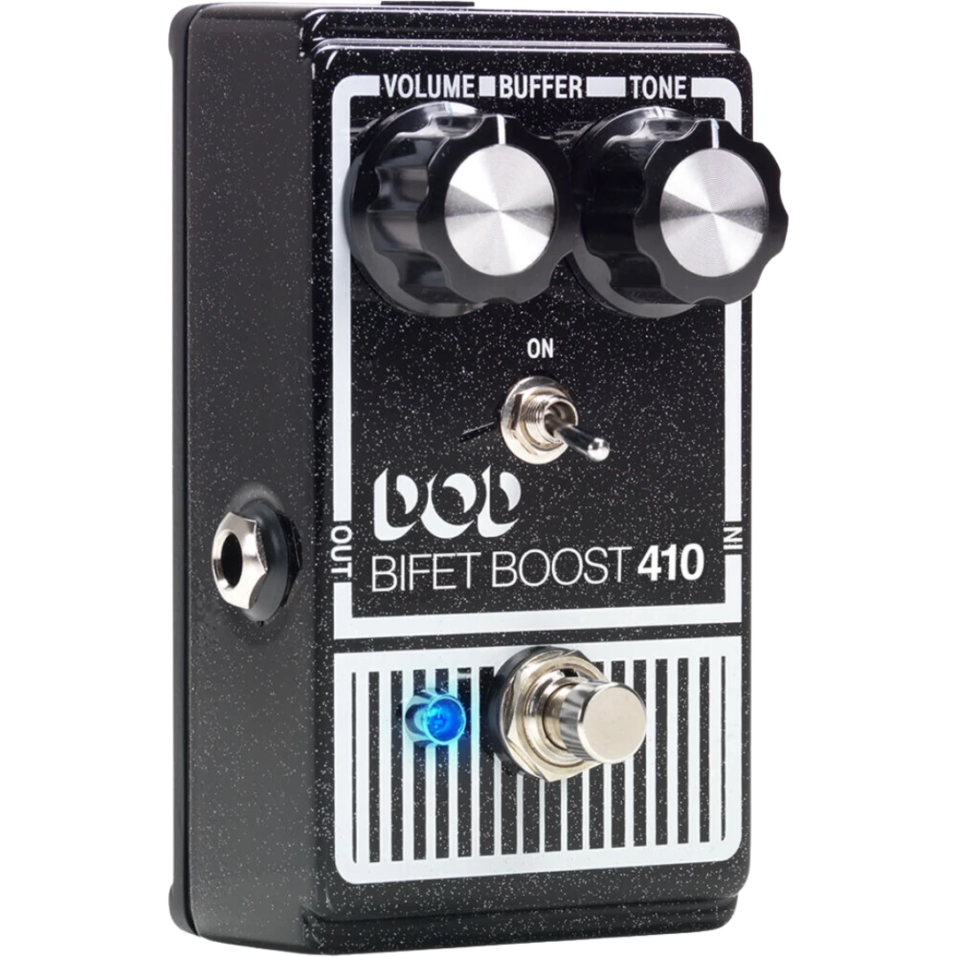 El Bifet Boost 410 cuenta con entradas y salidas de 1/4" TS Hi-Z y un circuito de bypass verdadero que mantiene el tono prístino en tu cadena de señal, incluso cuando el pedal está desactivado. El nuevo chasis de aluminio liviano es duradero sin ser voluminoso, y el pedal admite alimentación tanto de una batería de 9V como de una fuente de alimentación de 9 VDC, como la Digitech PS0913DC.