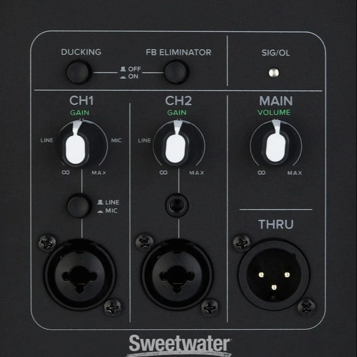 - Eliminador de retroalimentación incorporado reduce acoples y rumble fuera de control.