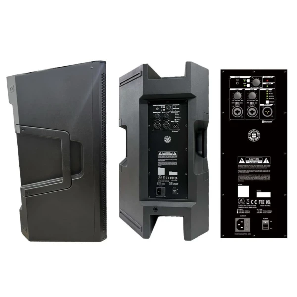 | Conectores | 2 x XLR + 1/4” (6.35 mm) TRS combo (Linea/Mic), 1 x 3.5 Estéreo AUX IN, 1 x Estéreo BT (app control), 1 x XLR salida mezcla (Lazo), 1 x IEC Toma corriente |